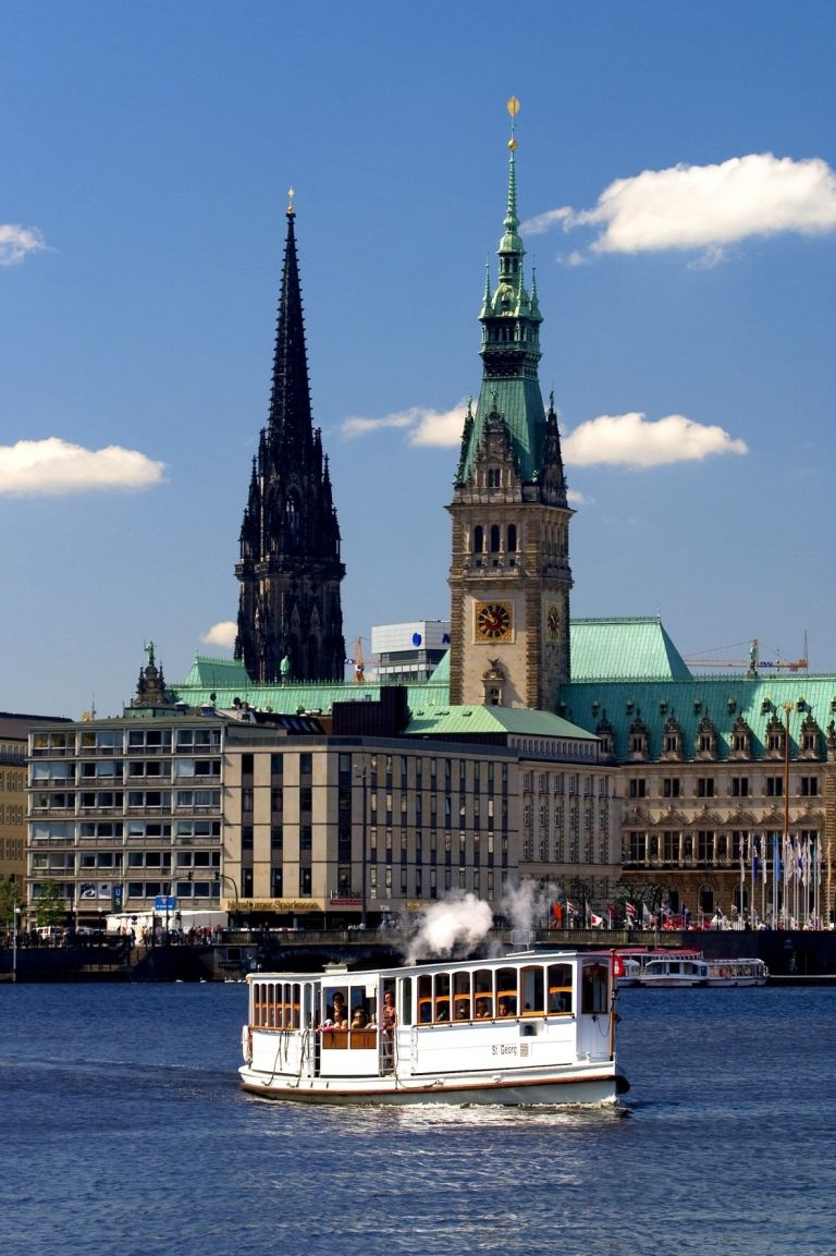 Bei einer Schifffahrt auf der Alster genießen Sie traumhafte Hamburg-Perspektiven von Bord des ältesten und einzig echten Alsterdampfers, der "ST. GEORG". Der Dampfer wurde 1876 auf der Hamburger Reiherstiegwerft gebaut und war bis 1939 auf der Alster im Linienverkehr eingesetzt. Originalgetreu in den Zustand der 1930er Jahre als original Dampfschiff restauriert und geführt wie einst mit drei Mann Besatzung: Kapitän, Maschinist und Condukteur. Vom Jungfernstieg führt die Tour über die Binnenalster unter der Lombardsbrücke hindurch auf die Außenalster. Hamburgs schönstes Gewässer bietet einen grandiosen Blick auf das Panorama der Stadt mit ihren vielen Türmen. Vorbei geht die beschauliche Fahrt an den eleganten Villen auf der Uhlenhorst und an der Bellevue. Danach führt die Route am Harvestehuder Ufer und seine Parkwiesen entlang zurück. Die Bordgastronie bietet einen Imbiss sowie eine Auswahl an Getränken.